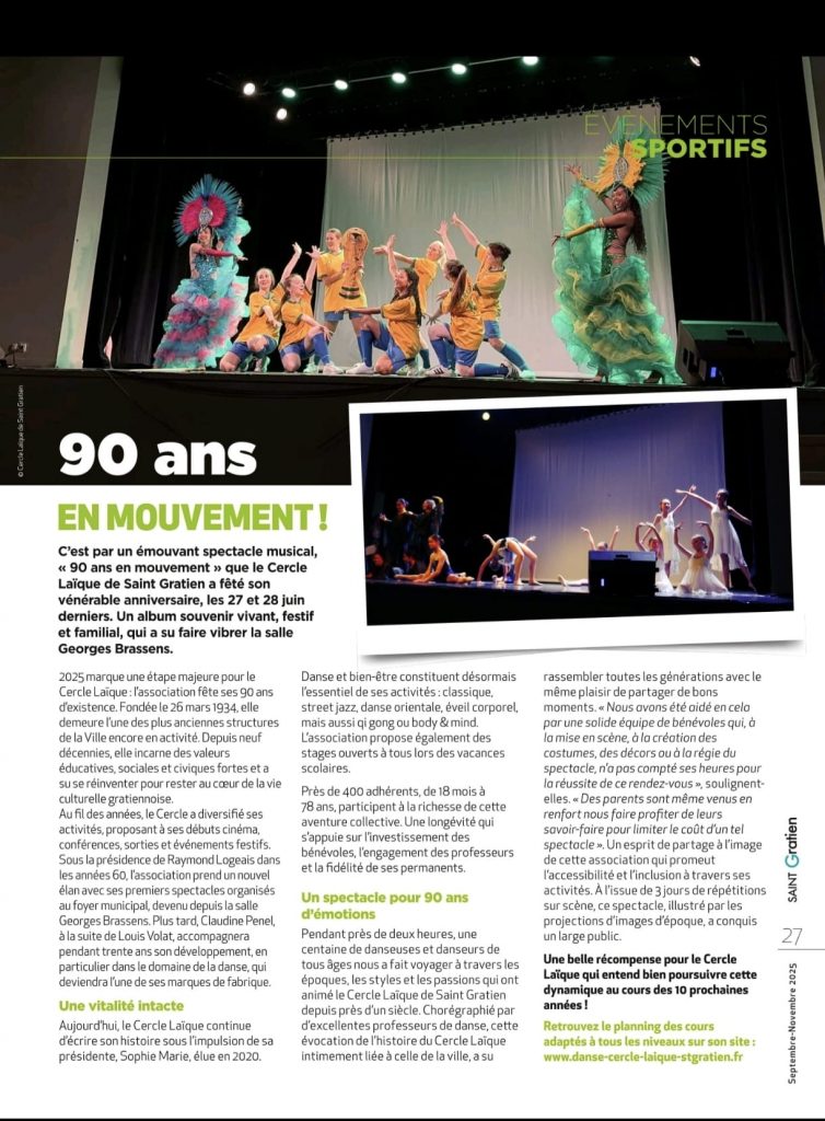 Dans l’édition récente du Journal d’informations de la ville de Saint-Gratien, le Cercle Laïque est mis à l’honneur à l’occasion de ses 90 ans.